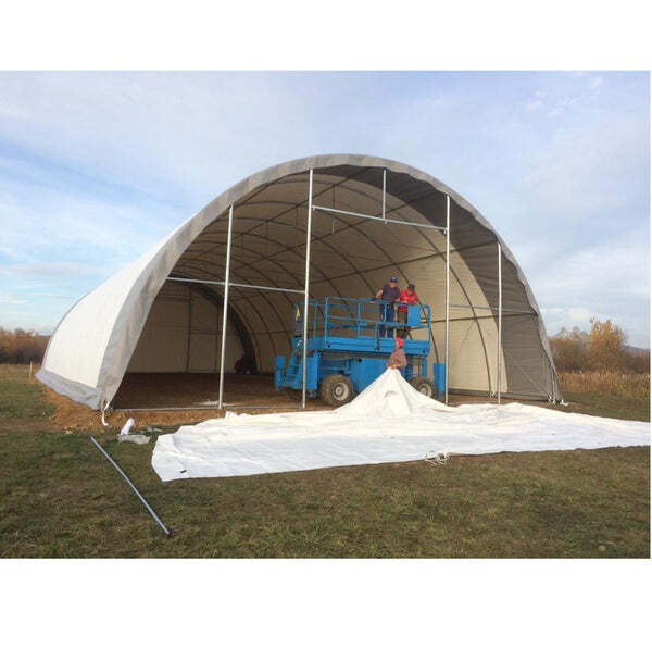 The Gold Mountain Single Truss Arch Storage Shelter W40’xL80’xH20’ is the perfect choice for anyone looking for a reliable and durable storage solution. This truss construction storage shelter is designed to be resistant towards water, UV, and fading, and can last up to 7-10 years under the right conditions. It features a freestanding style, mechanical doors at both ends, and a huge capacity for trucks, automobiles, and more bulk storage. This storage shelter will protect your belongings from wind, snow, and rain, and has a CSA/TUV Snow Rating Test Report and SGS fabric Certificate to guarantee its quality. Whether you need to store equipment, materials, or recreational items, the Gold Mountain Single Truss Arch Storage Shelter W40’xL80’xH20’ is the perfect choice.