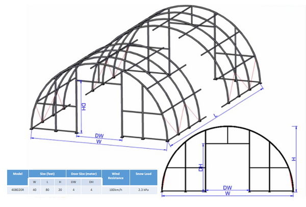 The Gold Mountain Single Truss Arch Storage Shelter W40’xL80’xH20’ is the perfect choice for anyone looking for a reliable and durable storage solution. This truss construction storage shelter is designed to be resistant towards water, UV, and fading, and can last up to 7-10 years under the right conditions. It features a freestanding style, mechanical doors at both ends, and a huge capacity for trucks, automobiles, and more bulk storage. This storage shelter will protect your belongings from wind, snow, and rain, and has a CSA/TUV Snow Rating Test Report and SGS fabric Certificate to guarantee its quality. Whether you need to store equipment, materials, or recreational items, the Gold Mountain Single Truss Arch Storage Shelter W40’xL80’xH20’ is the perfect choice.