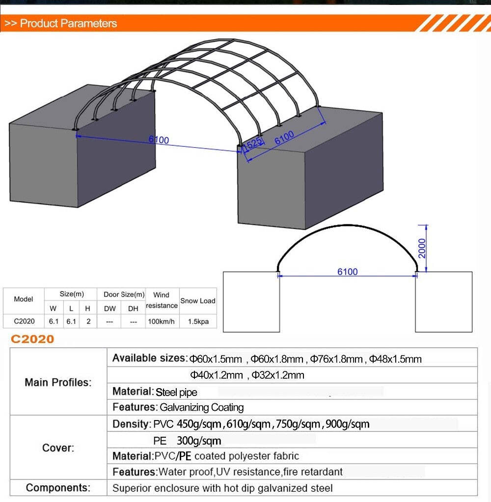 - Usage: Warehouse, farm tent, equipment storage, car lot, temporary office, livestock house, workshop, parties, big event