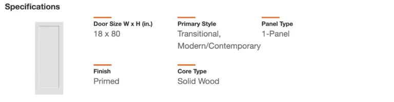 Refresh the look of your home with this 18 in. x 80 in. Shaker Interior Door Slab. This one-panel door will match many decor styles with a clean look and a high-quality vertical grain design that's highly durable. The solid pine construction comes primed and ready to paint or stain to easily match your existing doors. The installation hardware is not included.